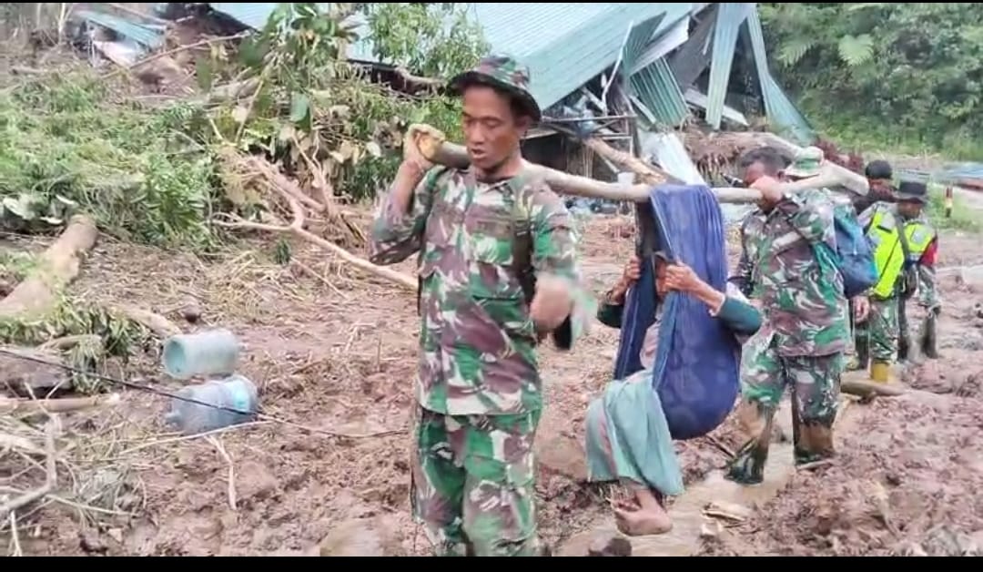 Proses evakuasi dilakukan menggunakan tandu darurat yang disiapkan secara gotong royong. Medan terjal, kontur jalan yang naik-turun, serta kondisi alam yang cukup menantang tidak menyurutkan langkah Babinsa dan warga dalam membawa kedua pasien. Setiap meter perjalanan menunjukkan kuatnya solidaritas antara TNI dan masyarakat dalam mengatasi kesulitan yang dihadapi bersama.