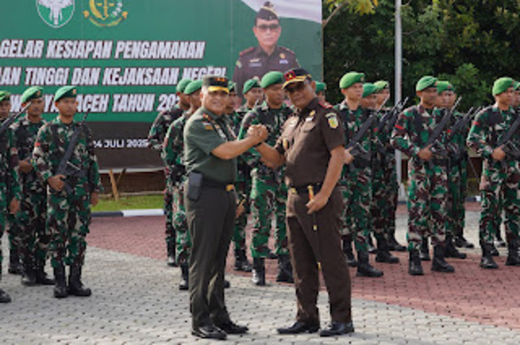 REMIDIA| Banda Aceh — Panglima Komando Daerah Militer Iskandar Muda (Pangdam IM), Mayor Jenderal TNI Niko Fahrizal, M.Tr.(Han), memimpin langsung Apel Gelar Kesiapan Pengamanan Kejaksaan Tinggi (Kejati) dan Kejaksaan Negeri (Kejari) se-wilayah Aceh, yang berlangsung di Lapangan Upacara kantor Kejaksaan Tinggi (Kejati) Aceh, Kota Banda Aceh. Kegiatan ini merupakan bentuk nyata dari komitmen Kodam Iskandar Muda dalam menjamin stabilitas keamanan serta memberikan dukungan maksimal terhadap pelaksanaan tugas-tugas strategis lembaga Kejaksaan, yang merupakan salah satu pilar penting dalam sistem penegakan hukum Negara Kesatuan Republik Indonesia, khususnya di wilayah Provinsi Aceh. Kamis (24/7/2025)