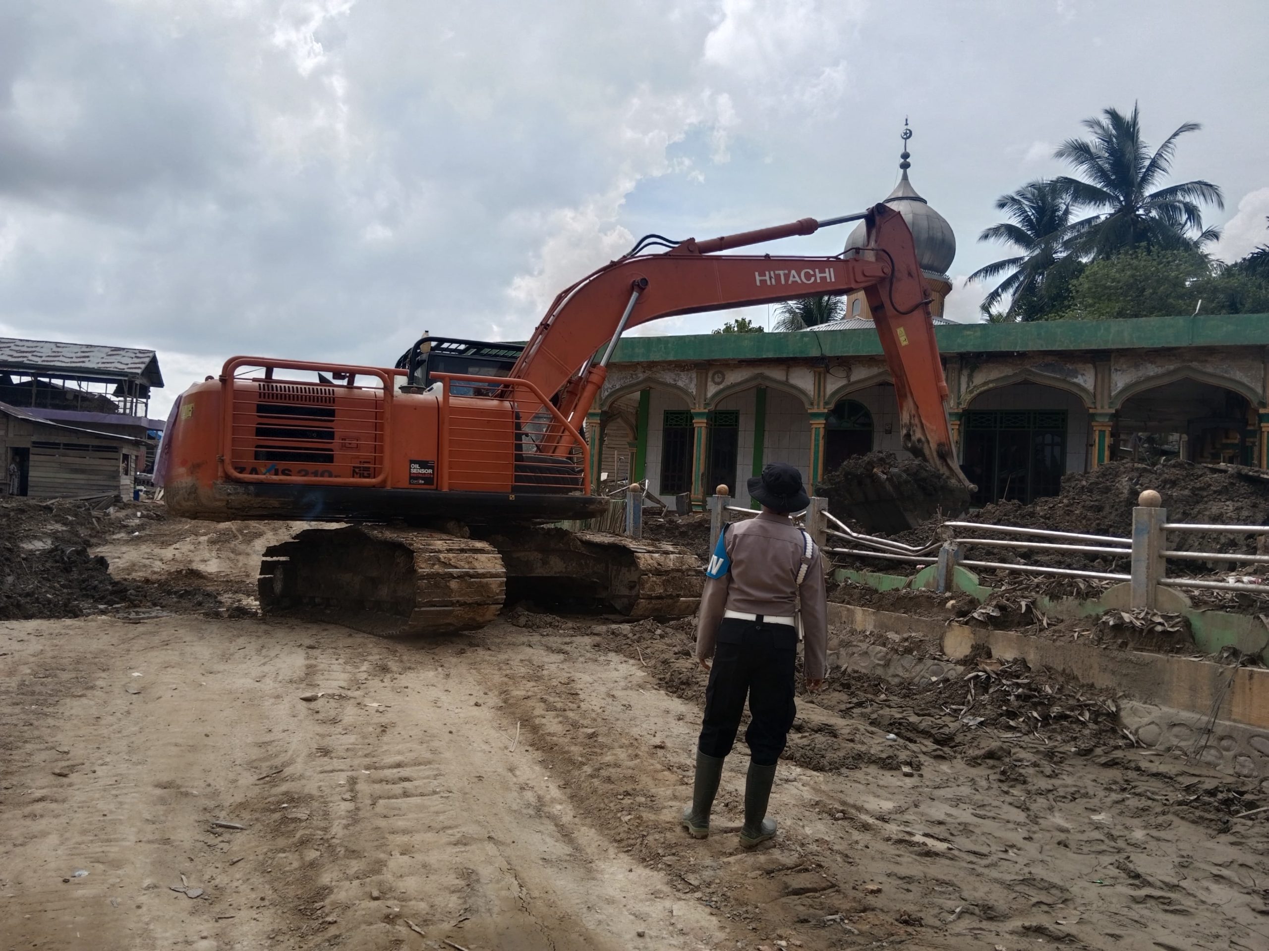Pembersihan dilakukan dengan menggunakan alat berat berupa beko (eksavator) yang merupakan bantuan dari Wakapolri. Alat berat tersebut dimanfaatkan untuk mempercepat proses pembersihan dan pemulihan pascabencana alam.