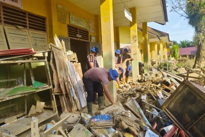 Remidia | Aceh Tamiang — Personel Polres Aceh Tamiang bersama BKO Brimob Polda Aceh melaksanakan kegiatan pembersihan lingkungan sekolah pascabencana banjir di Yayasan Pendidikan Ma’arif Tamiang (SMP ...