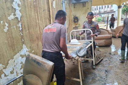 Remidia | Bireuen — Personel Polri dari Polres Bireuen melakukan pembersihan di UPTD SMP Negeri 1 Samalanga, Kabupaten Bireuen, Sabtu, 10 Januari 2016, pascabanjir yang melanda wilayah tersebut. Kabid...