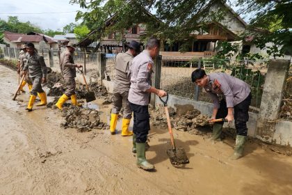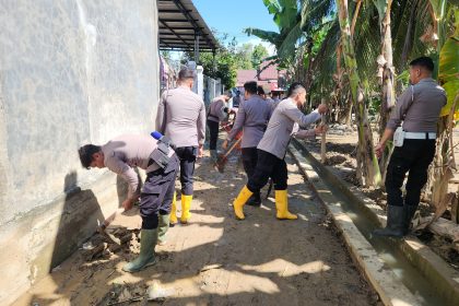 Remidia | Sigli – Personel Polres Pidie melaksanakan kegiatan pembersihan jalan di Dusun Dua Gampong Meunasah Lueng Sagoe, Kecamatan Mutiara, pasca banjir di Kabupaten Pidie, Jumat (19/12/2025)....