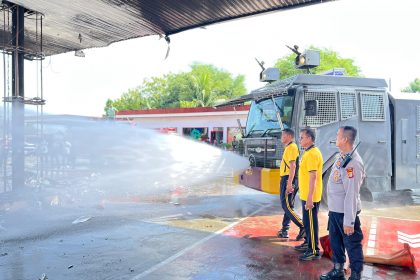 Remidia | Sigli – Polres Pidie mengerahkan mobil Armored Water Cannon (AWC) milik Satuan Samapta untuk membantu proses pemadaman titik api kebakaran yang terjadi di SPBU Kuala Beukah, Kecamatan ...