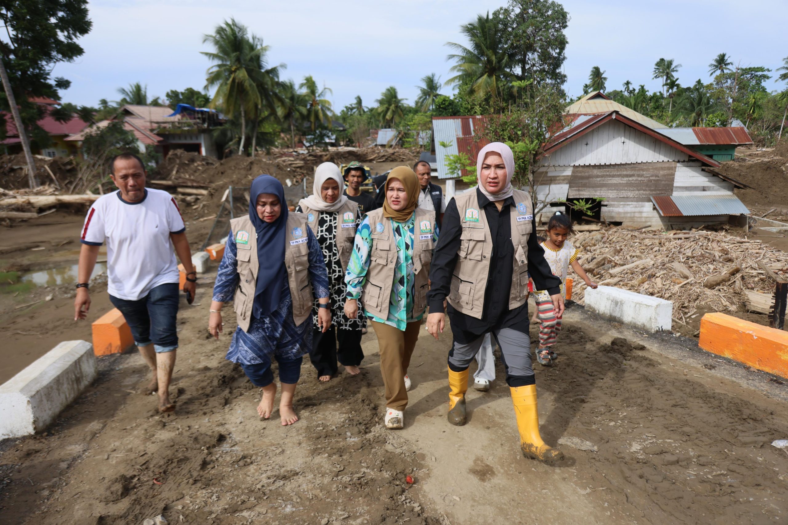 Selanjutnya Kak Na bersama istri Wakil Gubernur Aceh dan istri Ketua DPR Aceh terlibat dalam dialog penuh canda dengan Muklis serta warga yang berada di posko.