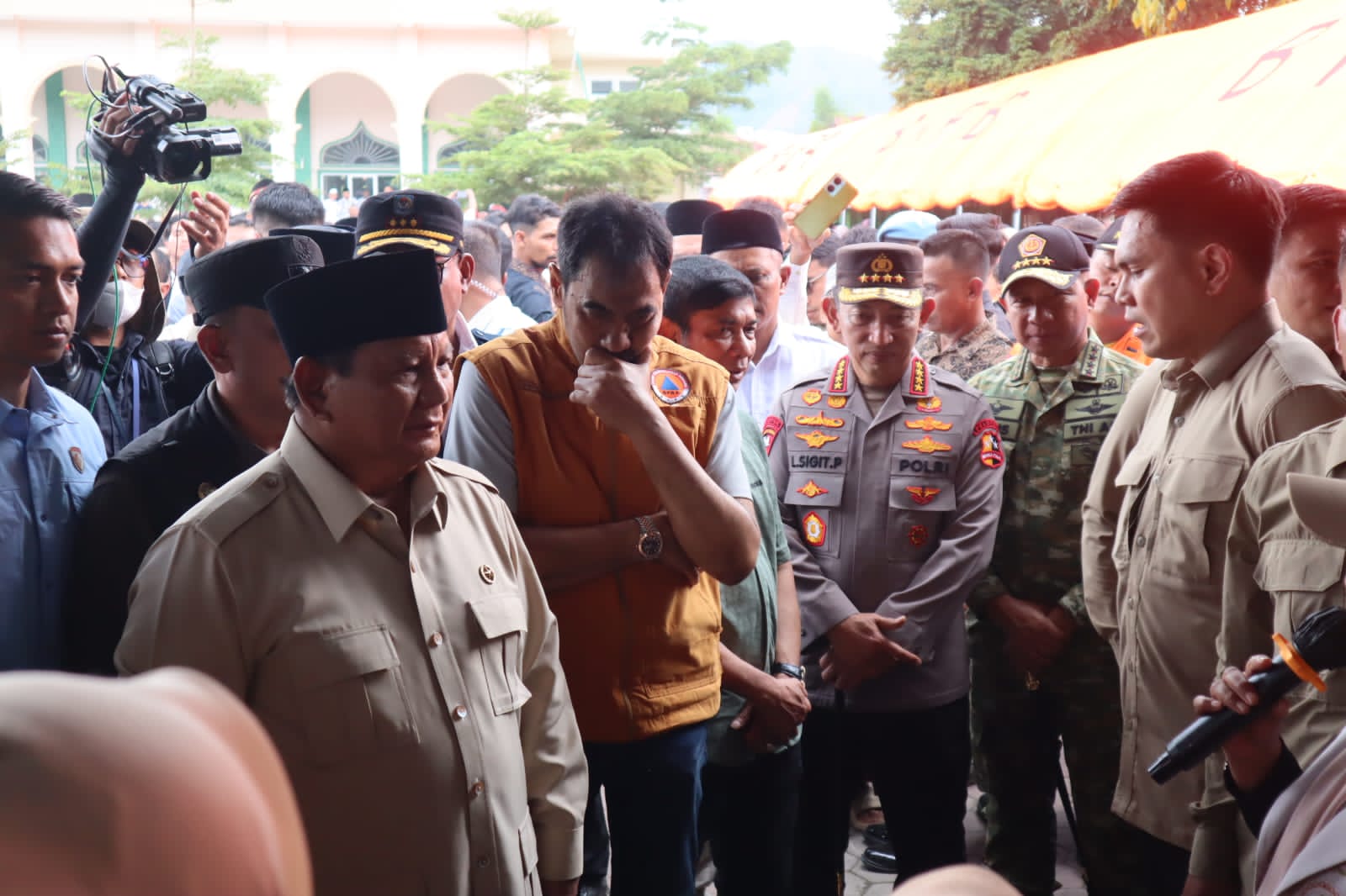 Tiga menit berselang pukul 12.07 WIB, Presiden Prabowo Subianto bersama Menteri Luar Negeri Sugiono dan rombongan tiba di Lapangan Musara Alun. Kedatangan Presiden disambut oleh Kapolri, Bupati Aceh Tengah, Kapolres Aceh Tengah, serta Forkopimda setempat sebelum bergerak menuju Posko Pengungsian di Masjid Al Abrar, Desa Gunung Balohen, Kecamatan Kebayakan.