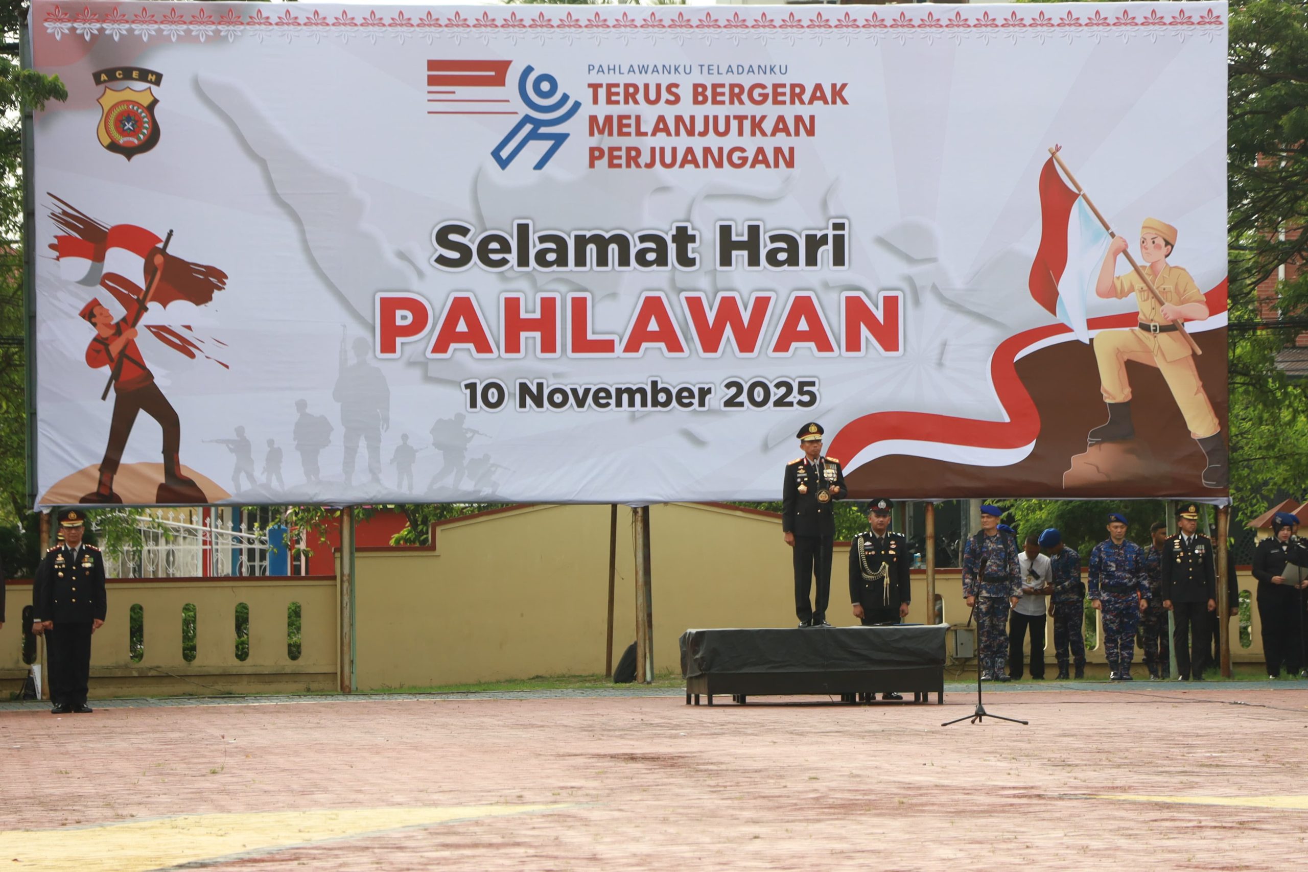 Remidia | Banda Aceh — Polda Aceh menggelar upacara peringatan Hari Pahlawan di lapangan Mapolda Aceh, Senin, 10 November 2025. Upacara tersebut dipimpin langsung oleh Kapolda Aceh Irjen Pol. Marzuki Ali Basyah dan diikuti oleh para pejabat utama beserta seluruh personel.