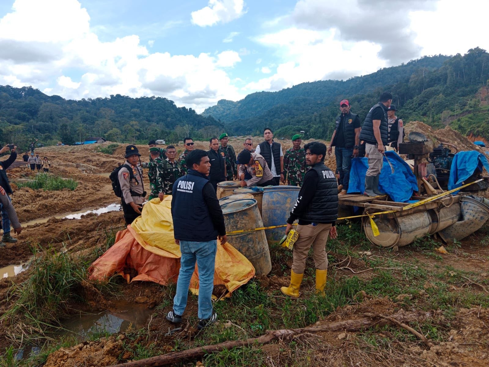 Dalam kegiatan tersebut tim gabungan menemukan sejumlah titik aktivitas penambangan emas ilegal.